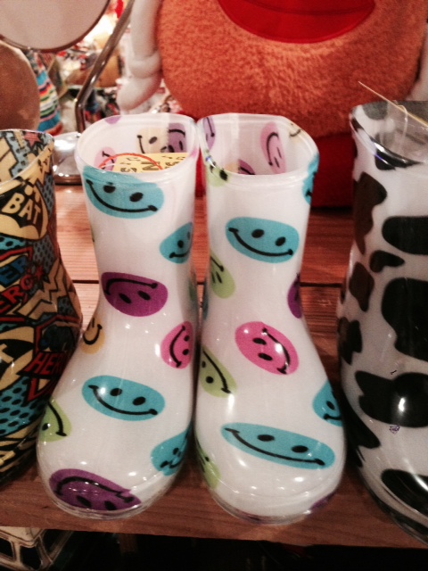 こちら可愛いスマイル柄のレインブーツ男女共にイケそうです。