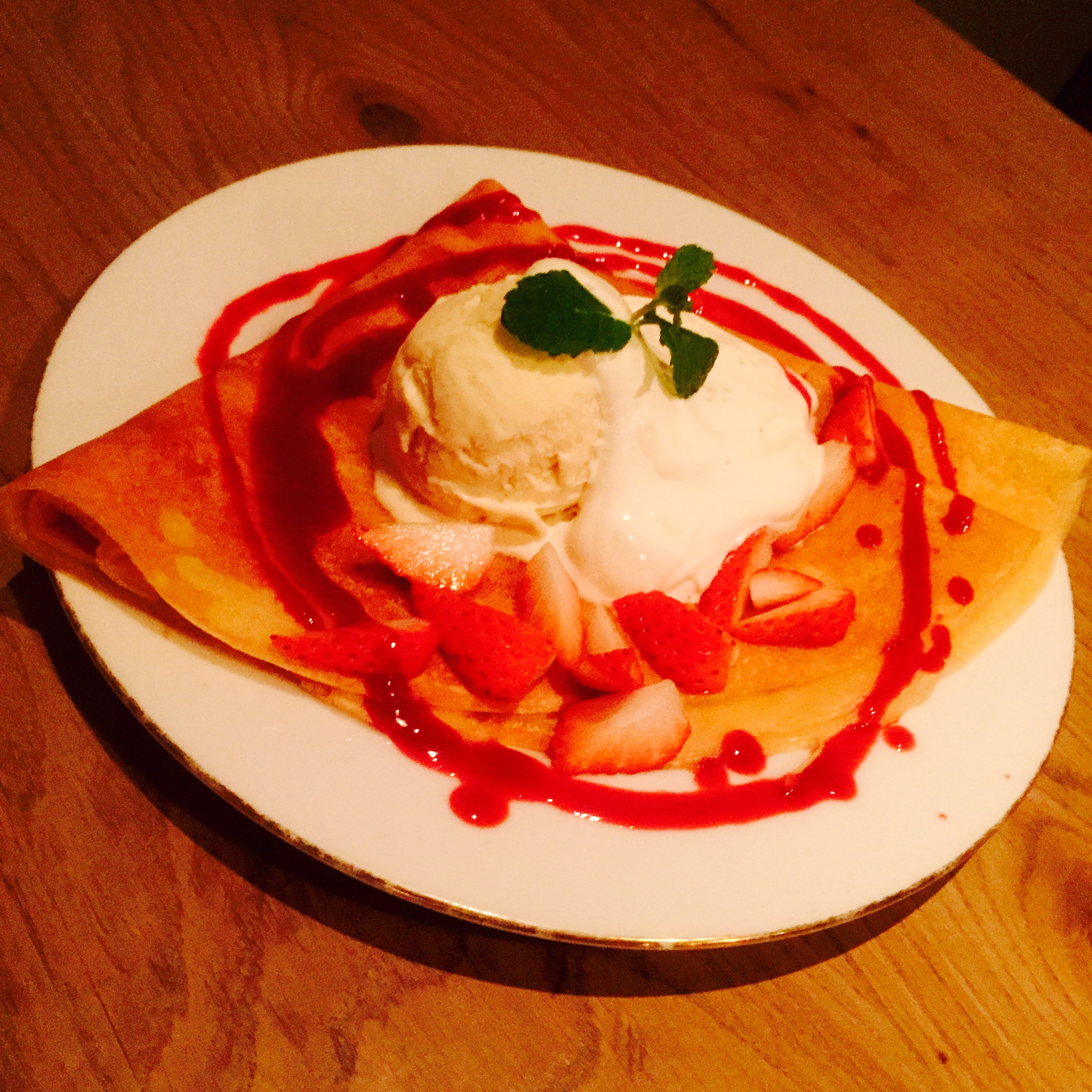 フレッシュな苺とフランボワーズソースの酸味に濃厚なバニラアイスが美味しい組み合わせです^^