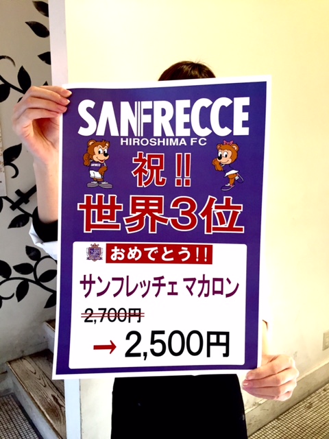 そこで!12/23の優勝パレードの日はメランジュドゥシュハリオリジナルデザインのサンフレッチェマカロンを税込2500円で販売いたします!もちろんJリーグとサンフレッチェ広島公認ですw