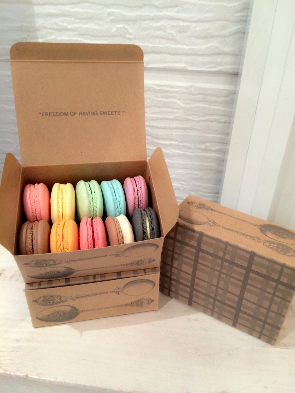 今は全部で12種類の色とりどりのマカロンがありますので、