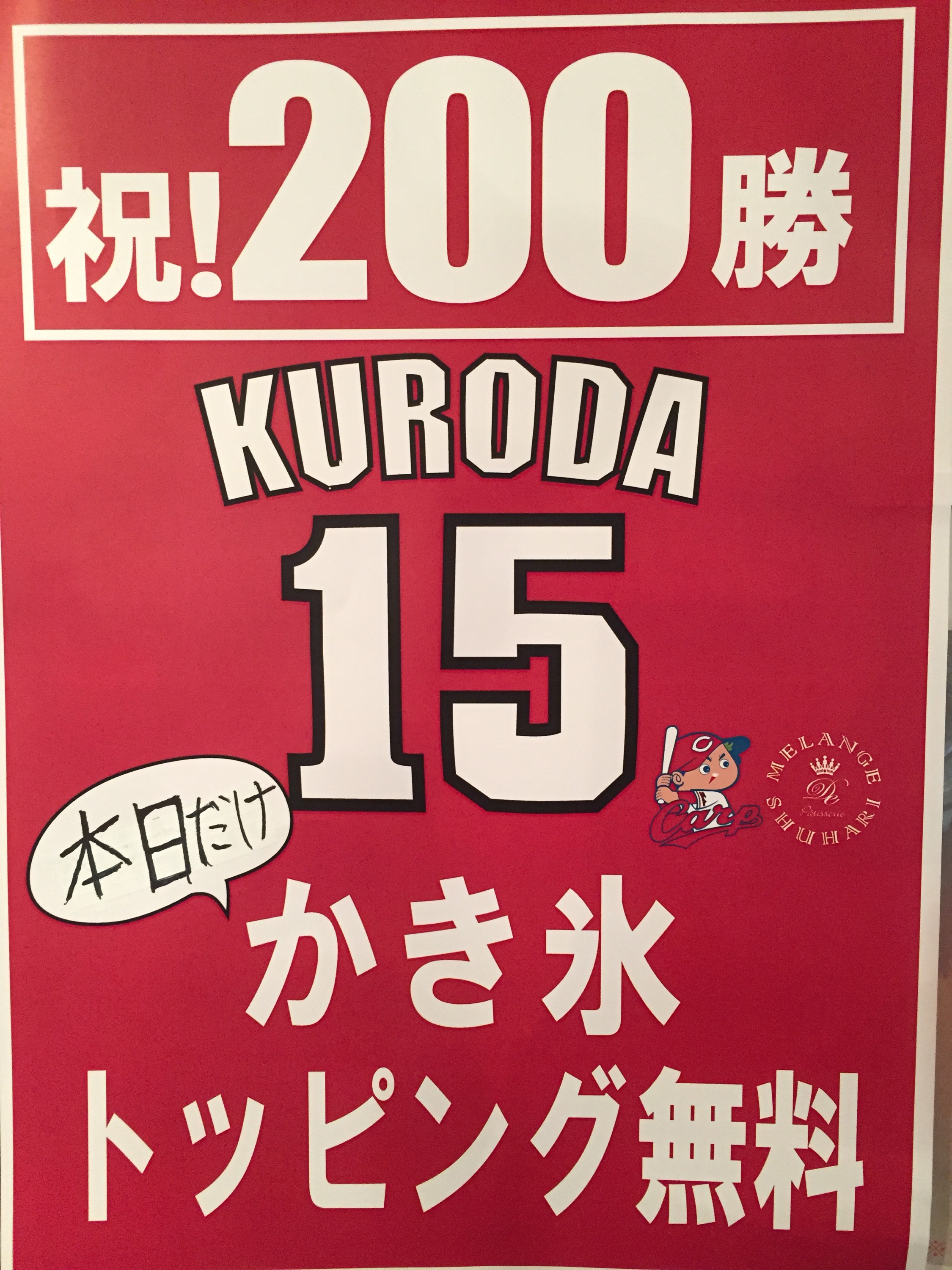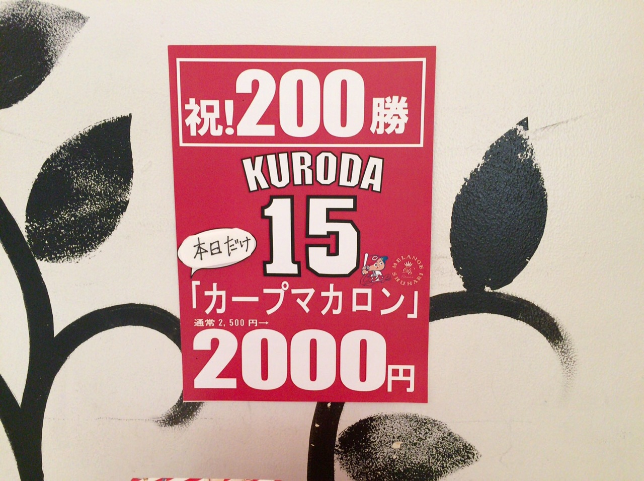 はい!ということで今回もカープ全力応援のメランジュドゥシュハリビストロ店では