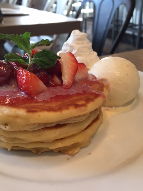 人気のストロベリーミルクパンケーキにアイスクリームをトッピングしてみました